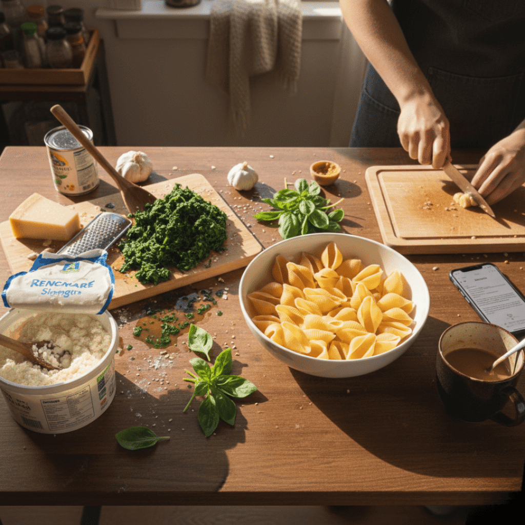 Within the first 100 words—look at me being responsible—I should probably mention the primary keyword again because, yes, this is technically a Creamy Spinach & Ricotta Stuffed Shells Recipe, but emotionally? It’s a story about slowing down and stuffing pasta with feelings.