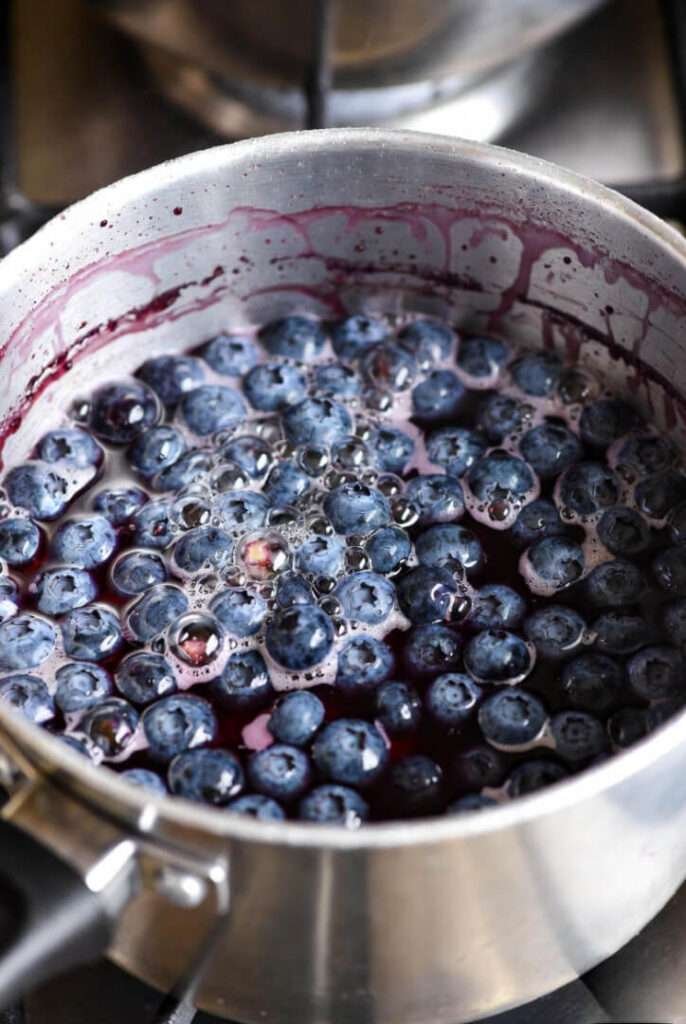 Heat them gently until they get all juicy and saucy and start popping like popcorn (but… blueberry edition). Smash a few with a spoon for that “rustic” look. Let it cool while you high-five yourself for doing anything stove-related in June.