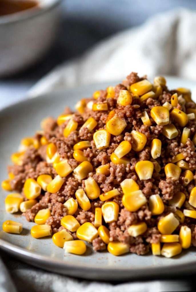 I pulsed the boiled corn in the blender. Not a paste. Just a chaotic chunky mess. That’s the goal. Texture is sexy, my friends.