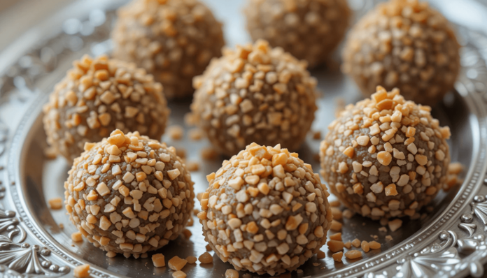- Optionally, roll the ladoos in desiccated coconut or chopped nuts for extra flair.
