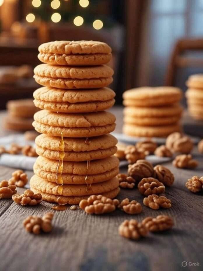 But here’s the magic part—you dunk those warm cookies straight into a pot of honey syrup. They soak it up like tiny spiced sponges. What comes out is this glorious thing: soft but not mushy, sweet but not tooth-achingly so, with just enough crunch from the walnuts on top.