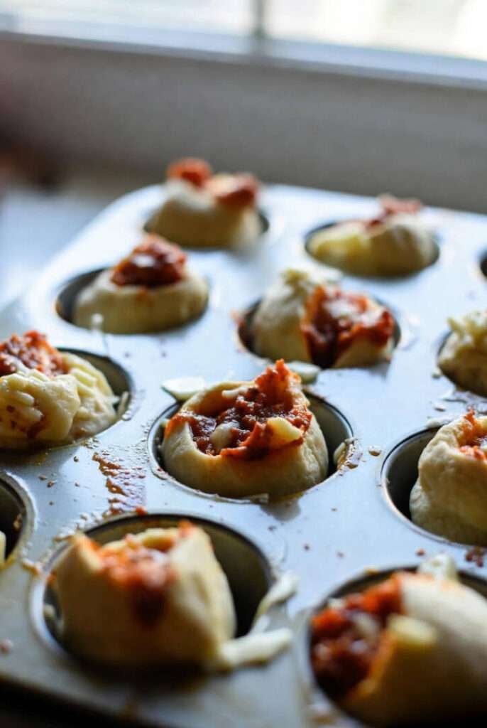 Cheese everywhere. Sauce dripping. One puff fully escaped its muffin cup like it had somewhere else to be.