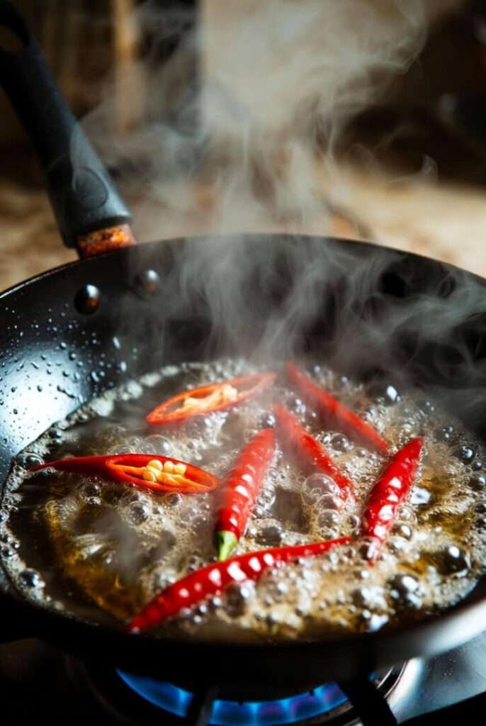 - Dried red chilies (4–6, depending on how much you like suffering)